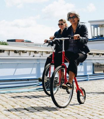 Indien gewenst, kan je de historische fiets combineren met een step. Zo kan iedereen mee. De tocht op een Historische fiets is ideaal als groepsuitje, bedrijfsuitje, vrijgezellenfeest, teambuilding of familie uitje.